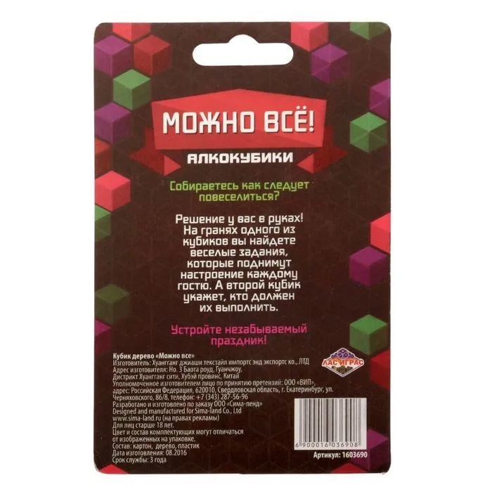 Купить кубик "можно все", алкокубики для принятия решений от 60 руб. с доставкой до пункта выдачи в Аше. Интернет магазин ДекаМаркет. Оплата при получении.